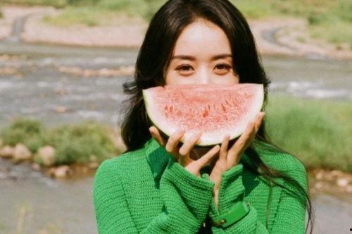 赵丽颖吃瓜现场,表情逗趣